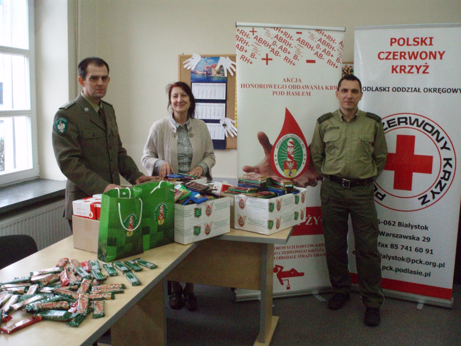 W ramach przedmiotowej akcji trwającej od 01.10.2015 r. do 30.11.2015 r. udało się zebrać 36 450 ml krwi, 7 900 ml osocza oraz 1000 ml płytek krwi. Tym drogocennym płynem podzielili się pracownicy i funkcjonariusze Podlaskiego Oddziału Straży Granicznej oraz osoby niezwiązane z formacją. Ponadto honorowi krwiodawcy postanowili włączyć się w pomoc w tworzeniu paczek dzieciom będącym pod opieką Polskiego Czerwonego Krzyża w ramach projektu „Gwiazdka Czerwonokrzyska”. Udało się zebrać 635 czekolad oraz innych słodyczy o łącznej wadze ponad 60 kg. Słodycze te zostały przekazane w dniu dzisiejszym na ręce przedstawicieli Oddziału Rejonowego Polskiego Czerwonego Krzyża w Białymstoku.
