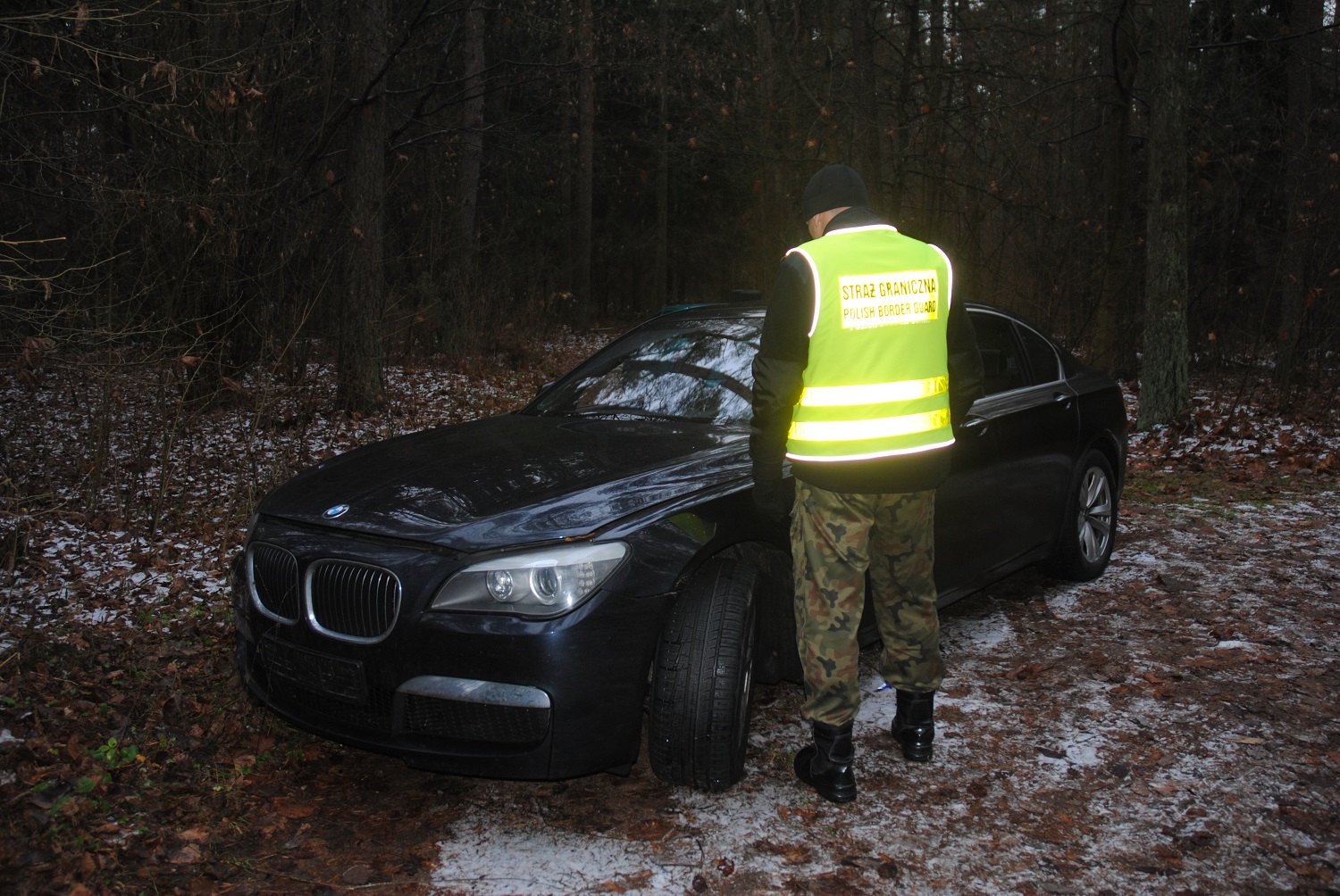 Funkcjonariusze z Placówki SG w Sejnach w niedzielę (29.11.2015 r.) na terenie gminy Giby ujawnili pozostawione w pobliskim lesie BMW 750i. Pojazd ten dzień wcześniej został skradziony na terytorium Niemiec. W aucie znajdowały się niemieckie tablice rejestracyjne. Szacunkowa wartość pięcioletniego BMW to 130 tys. zł. Pojazd został przekazany funkcjonariuszom Policji z Sejn.