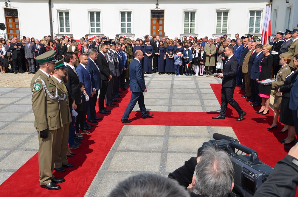 Na dziedzińcu Pałacu Prezydenckiego w Warszawie Komendant Podlaskiego Oddziału Straży Granicznej Pan płk SG Andrzej Rytwiński z rąk Prezydenta Rzeczypospolitej Polskiej Pana Andrzeja Dudy odebrał Flagę Państwową, dedykowaną funkcjonariuszom i pracownikom Podlaskiego Oddziału Straży Granicznej w Białymstoku. Inicjatywa ta była możliwa dzięki wzajemnej współpracy: Klubu Honorowych Dawców Krwi Polskiego Czerwonego Krzyża działającego przy Podlaskim Oddziale Straży Granicznej, Zarządu Oddziałowego Niezależnego Samorządnego Związku Zawodowego Funkcjonariuszy Straży Granicznej oraz Koła nr 14 im. Powstańców Sejneńskich Związku Żołnierzy Wojska Polskiego działającego przy Placówce SG w Sejnach. Podlaski Oddział Straży Granicznej jest pierwszą instytucją na Podlasiu, a drugą w formacji, która otrzymała takie wyróżnienie. W uroczystości uczestniczył Komendant Główny Straży Granicznej mjr SG Marek Łapiński.