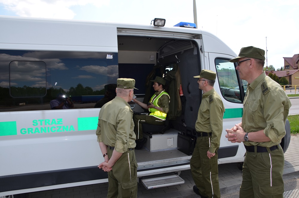 Na początku wizyty ppłk SG Tomasz Praga z płk. Grzegorzem Opalińskim obserwowali ćwiczenia związane z planowanym tymczasowym przywróceniem kontroli granicznej podczas szczytu NATO i Światowych Dni Młodzieży, które przeprowadzano w byłych przejściach granicznych w Budzisku i Ogrodnikach.