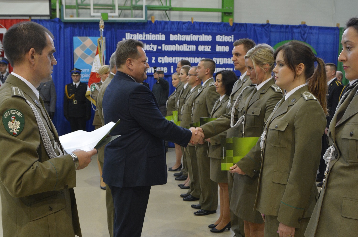 Wczoraj w Zespole Szkół Ogólnokształcących w Zambrowie z rąk Sekretarza Stanu w Ministerstwie Spraw Wewnętrznych i Administracji i Komendanta Podlaskiego Oddziału Straży Granicznej akty mianowań na kolejne stopnie odebrało 20 funkcjonariuszy Straży Granicznej. Awanse na kolejne stopnie odebrali równiez funkcjonariusze Policji i Straży Pożarnej. W trakcie uroczystości Komendant Podlaskiego Oddziału Straży Granicznej w Białymstoku pułkownik SG Grzegorz Biziuk został odznaczony Medalem „Za Zasługi dla Policji”.