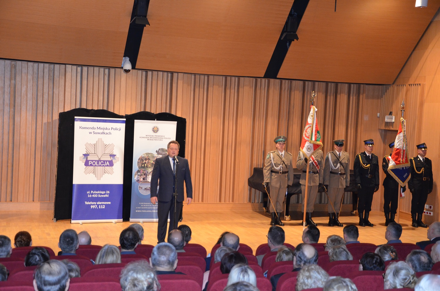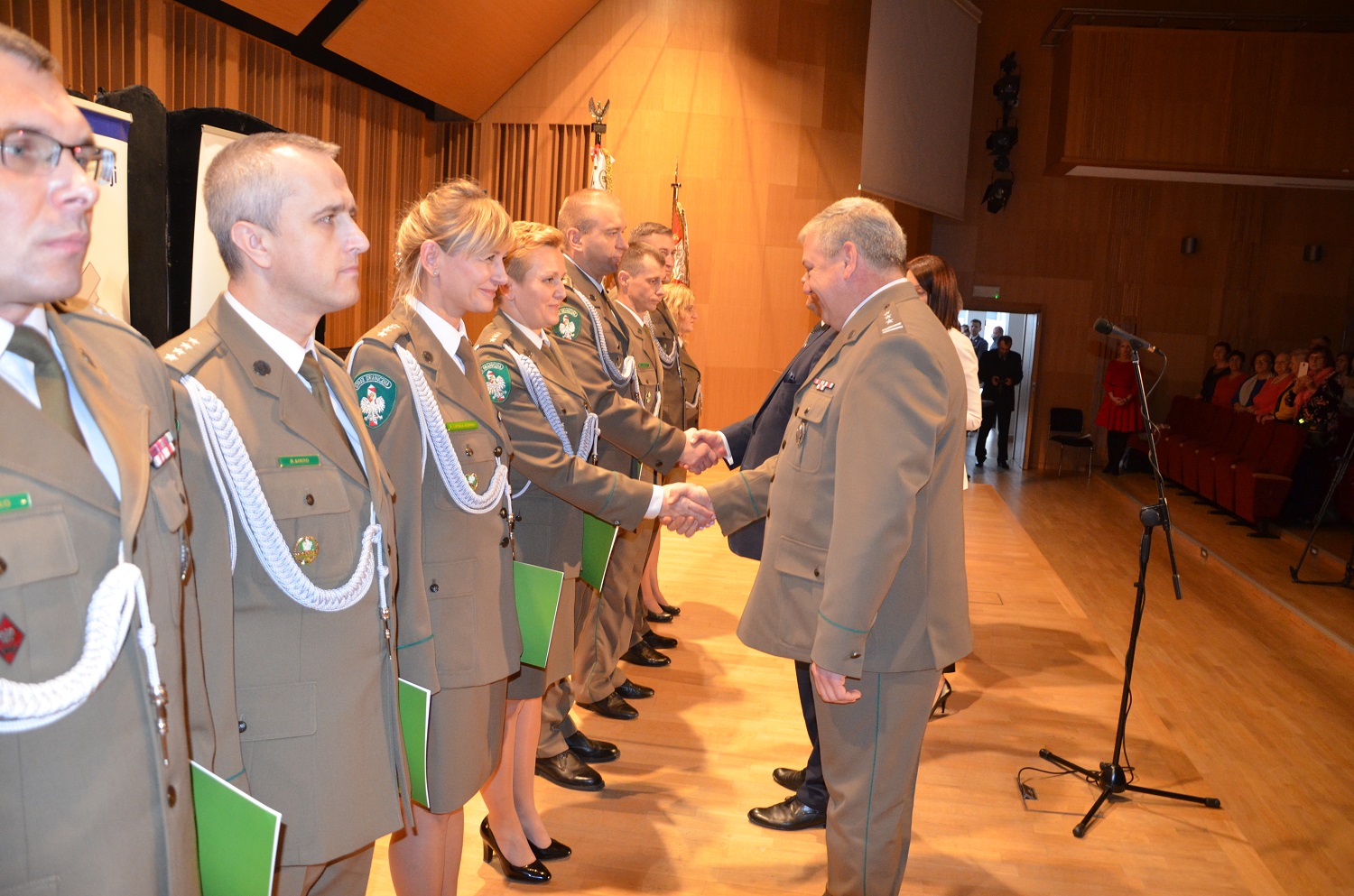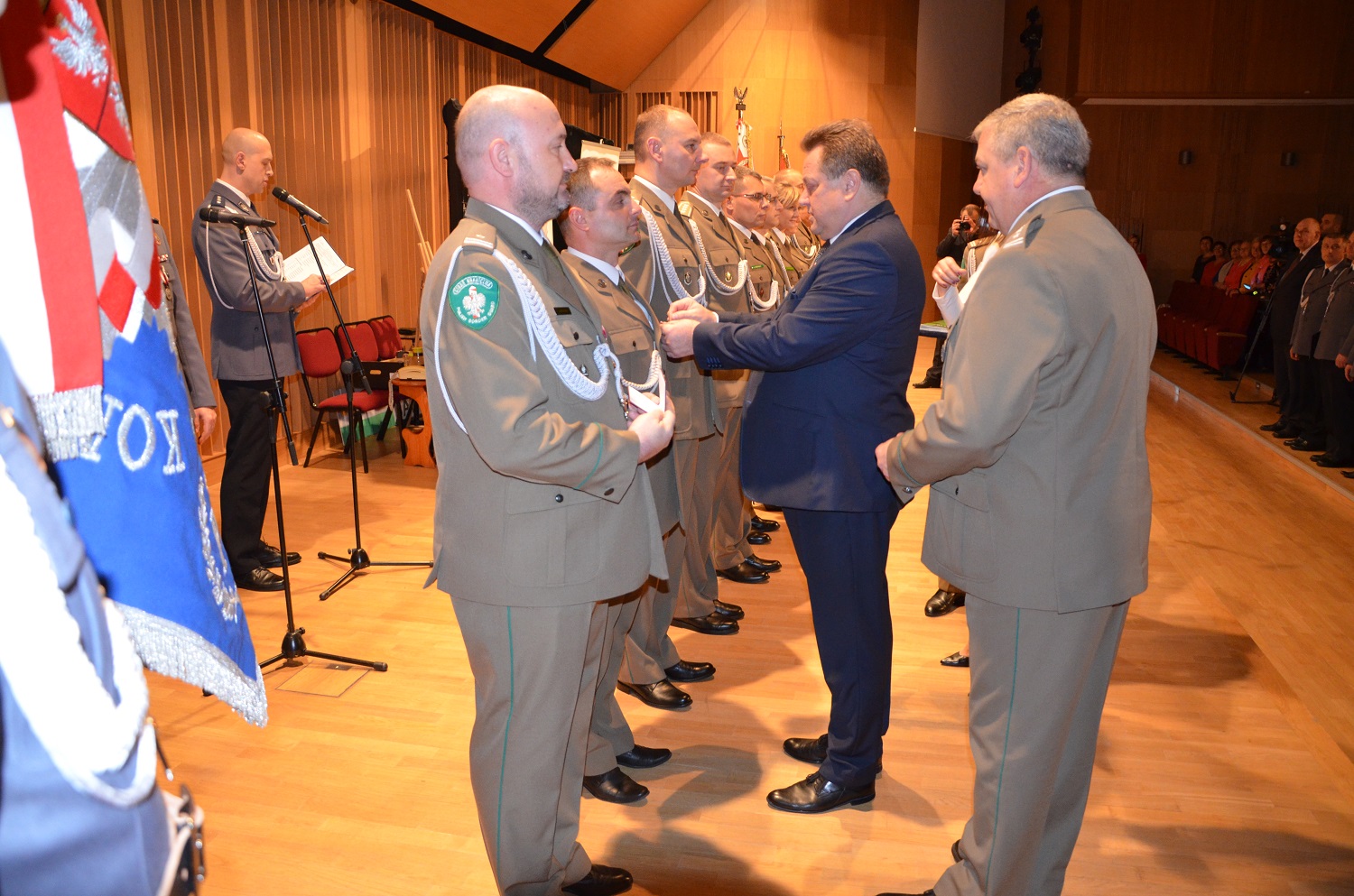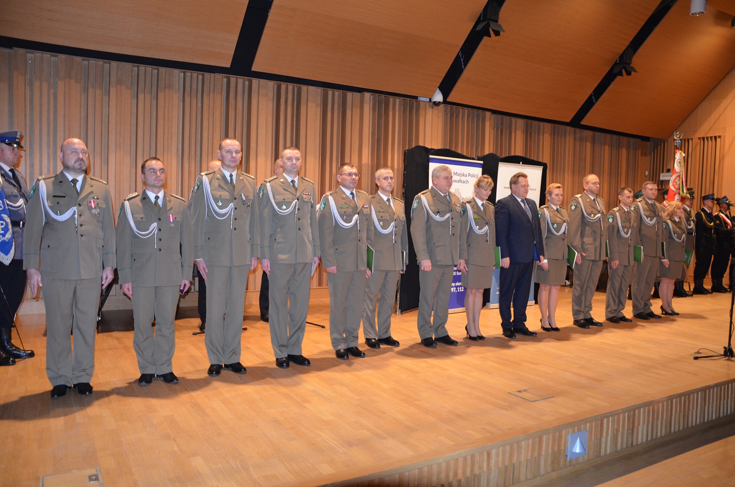 Spotkanie w Państwowej Szkole Muzycznej I i II stopnia w Suwałkach rozpoczęło się od uroczystej zbiórki z udziałem funkcjonariuszy podlaskiej Straży Granicznej, Policji, Państwowej Straży Pożarnej. Uroczystość uświetnili swoją obecnością między innymi: Sekretarz Stanu w Ministerstwie Spraw Wewnętrznych i Administracji Jarosław Zieliński, Komendant Podlaskiego Oddziału Straży Granicznej pułkownik SG Grzegorz Biziuk, Zastępca Komendanta Wojewódzkiego Policji w Białymstoku podinspektor Jacek Tarnowski, Podlaski Komendant Wojewódzki Państwowej Straży Pożarnej starszy brygadier Jarosław Wendt. Obecni byli także komendanci powiatowi i miejscy Policji, Państwowej Straży Pożarnej, komendanci placówek Straży Granicznej, wyróżnieni funkcjonariusze oraz przedstawiciele innych podlaskich służb mundurowych i zaproszeni goście. W trakcie uroczystości Sekretarz Stanu w Ministerstwie Spraw Wewnętrznych i Administracji Jarosław Zieliński wraz z szefami podległych mu służb wręczyli funkcjonariuszom medale, odznaczenia oraz awanse na wyższe stopnie. Wśród wyróżnionych znalazło się 12 funkcjonariuszy z Podlaskiego Oddziału Straży Granicznej.