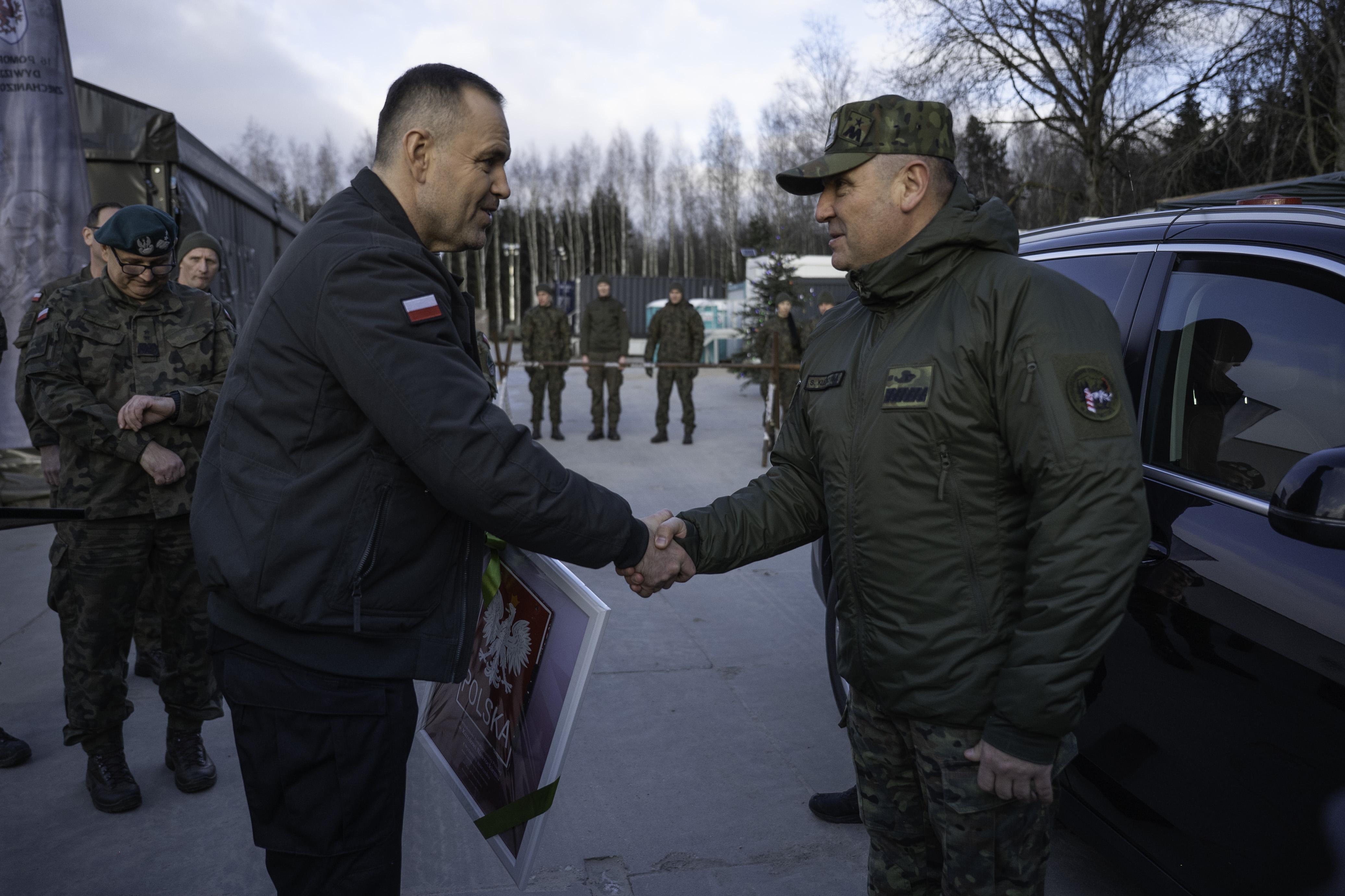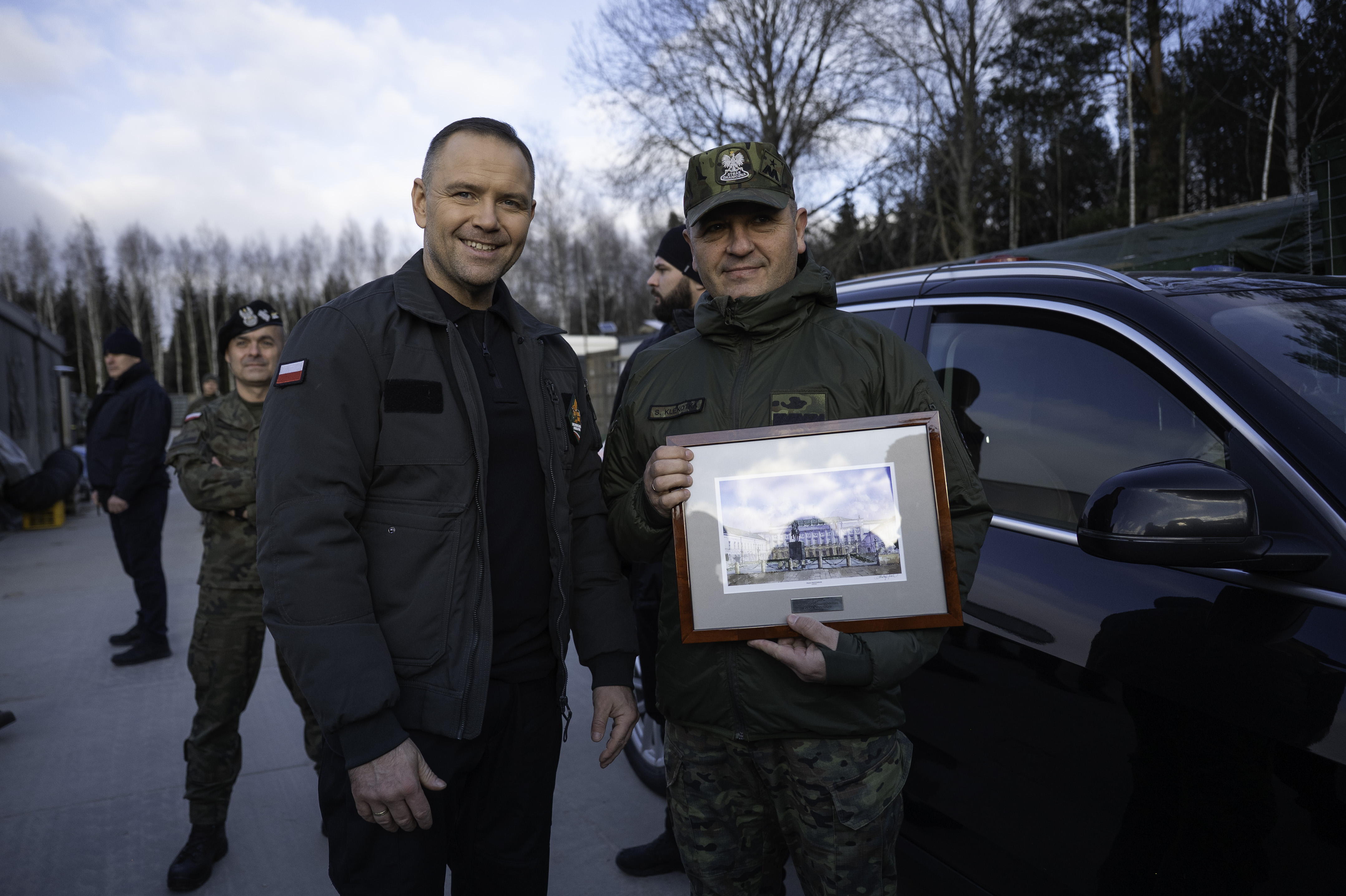 Na pamiątkę wizyty Komendant Podlaskiego Oddziału Straży Granicznej gen. bryg. SG Sławomir Klekotka w imieniu Komendanta Głównego SG gen. dyw. SG Roberta Bagana wręczył Prezydentowi godło RP ze znaku granicznego z granicy polsko-białoruskiej.