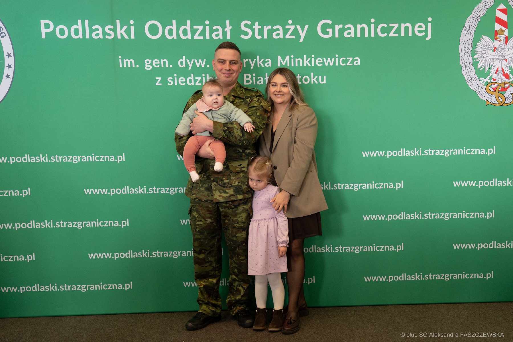 Zostały również wręczone odznaczenia. Wyróżnieni funkcjonariusze otrzymali medale za Zasługi dla Straży Granicznej, odznaki Straży Granicznej oraz odznaki pamiątkowe Podlaskiego Oddziału Straży Granicznej.