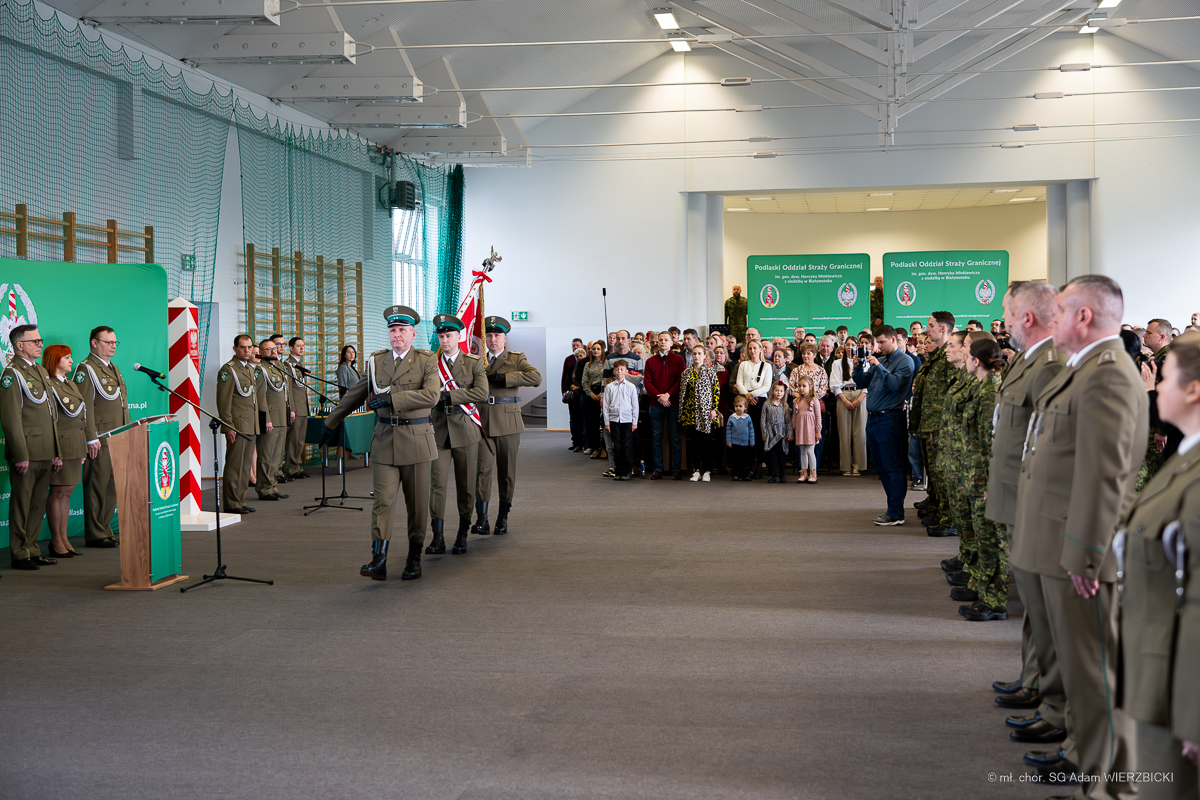 17 kobiet i 32 mężczyzn w asyście pocztu sztandarowego złożyło ślubowanie przed Komendantem Podlaskiego Oddziału Straży Granicznej gen. bryg. SG Sławomirem Klekotką. To pierwsze, ale nie ostatnie, w tym roku ślubowanie. Komendant pogratulował nowo zatrudnionym funkcjonariuszom pozytywnego zakończenia procesu rekrutacji i życzył wielu sukcesów w szeregach Straży Granicznej. Błogosławieństwa na służbę udzielili im kapelani Straży Granicznej, rzymskokatolicki i prawosławny.