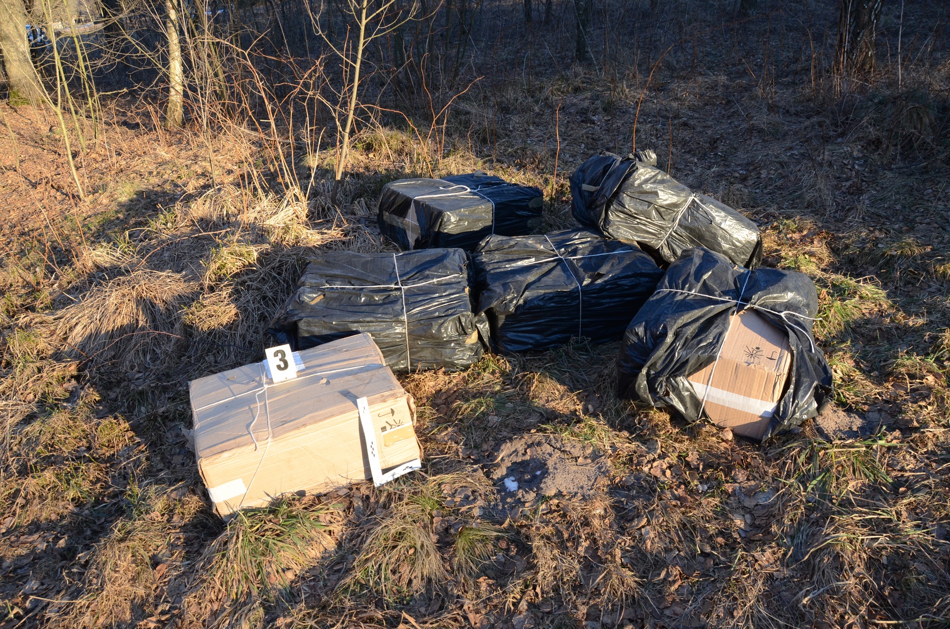 16 lutego br. w odległości około 9 km od linii granicy (powiat sokólski) funkcjonariusze patrolujący teren przy torach kolejowych zauważyli porozrzucane kartonowe pudła. W sumie w niedalekiej odległości od siebie znajdowało się ponad sześćdziesiąt paczek zawiniętych w czarną folię. Po zebraniu i przeliczeniu zawartości okazało się, że kartony zawierały 33 tys. paczek papierosów bez polskich znaków skarbowych akcyzy. Szacunkowa wartość ujawnionej kontrabandy wynosi ponad 420 tys. zł. Łączny należny podatek ponad 675 tys. zł.
