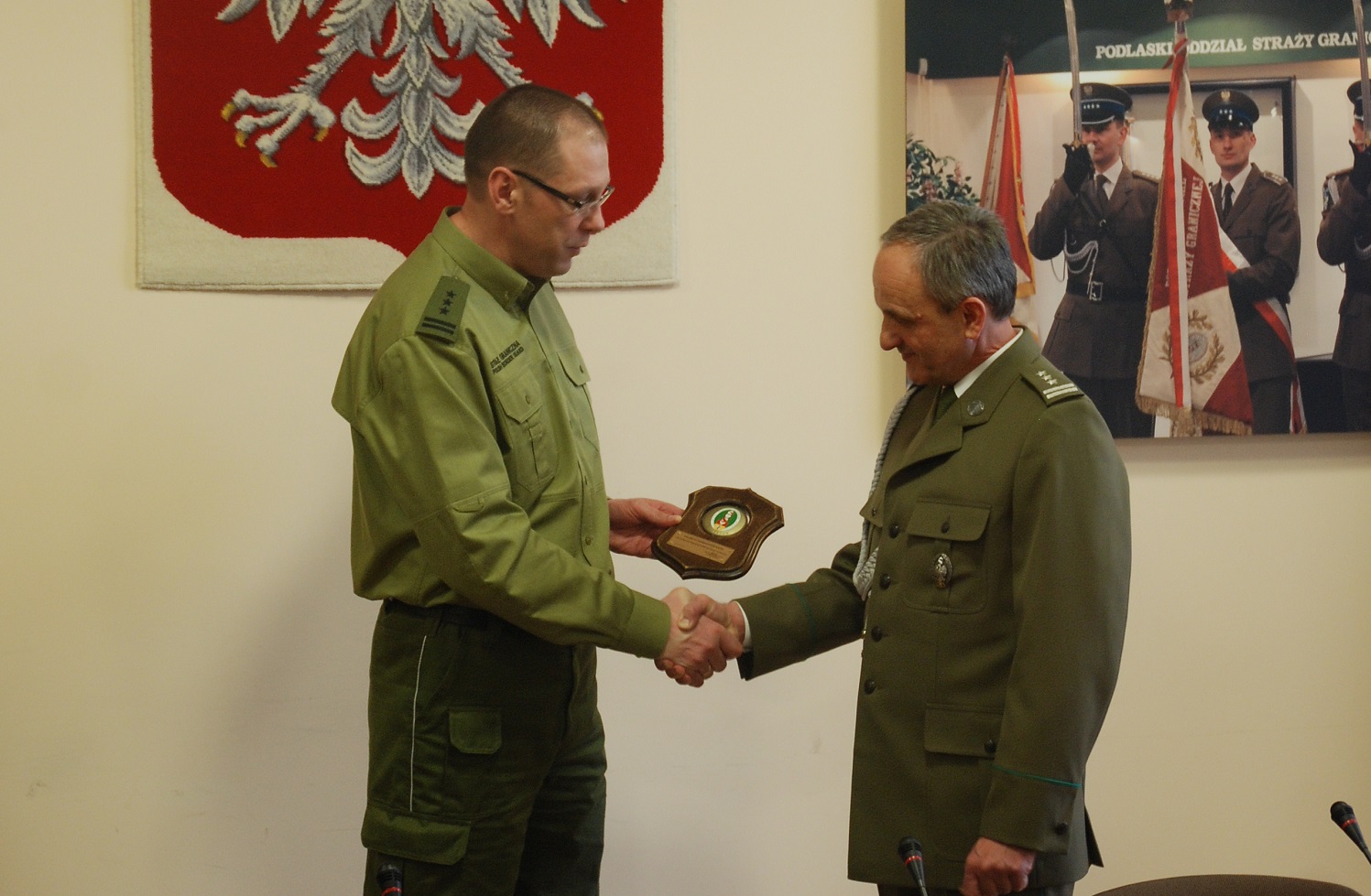 Jednym z niezwykle wyjątkowych elementów odprawy, 25 lutego, było pożegnanie z mundurem płk. SG Stanisława Firleja - ostatnio naczelnika Wydziału Koordynacji Działań POSG. Za swoją prawie 40 letnią służbę i szczególne zasługi w ochronie granicy państwowej na zakończenie został on mianowany przez Ministra Spraw Wewnętrznych na stopień pułkownika SG. Komendant Podlaskiego OSG za wzorowe wykonywanie obowiązków służbowych wymagających szczególnego zaangażowania, sumienność oraz pełną dyspozycyjność wyróżnił płk. SG Stanisława Firleja medalem za zasługi dla Podlaskiego Oddziału Straży Granicznej.