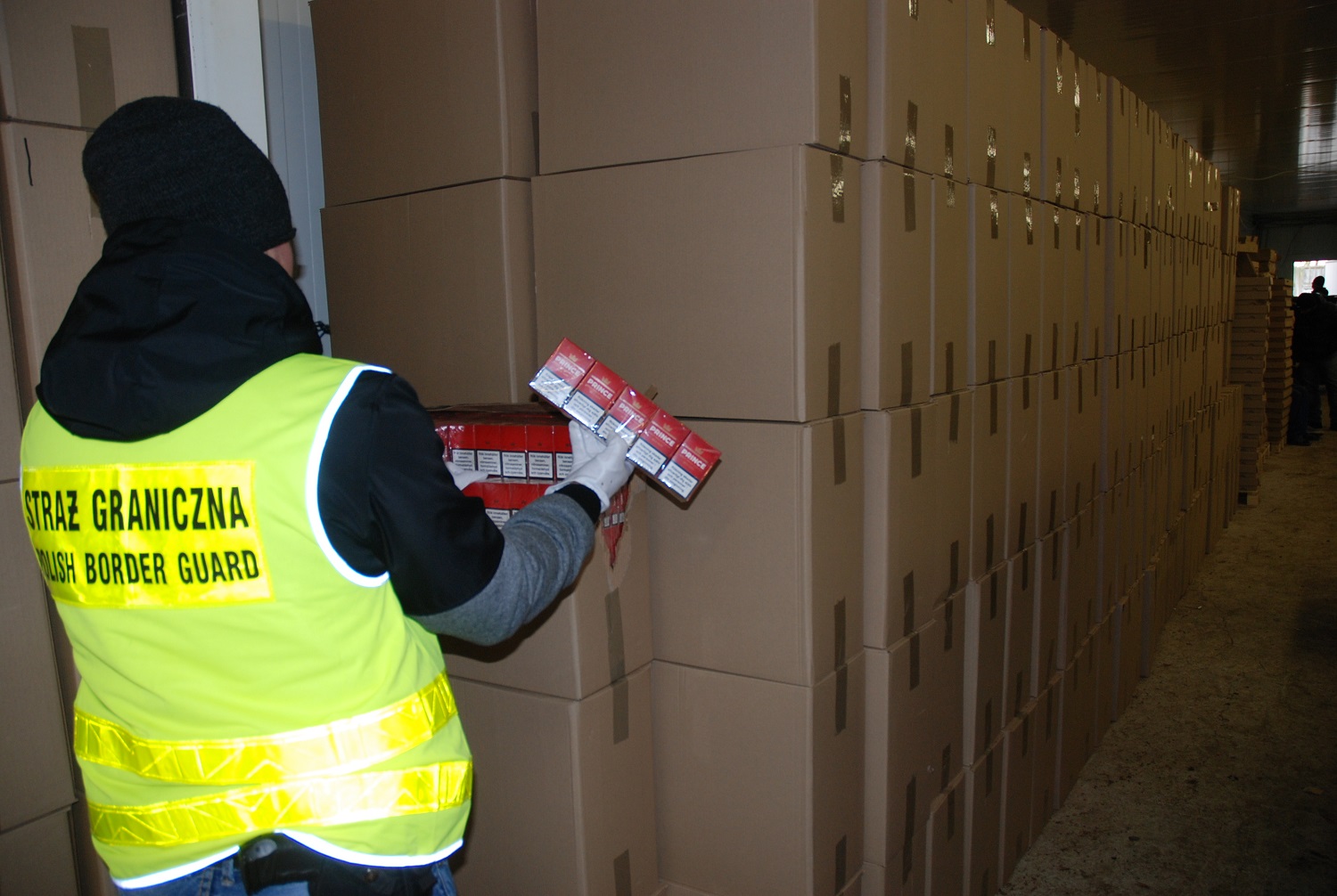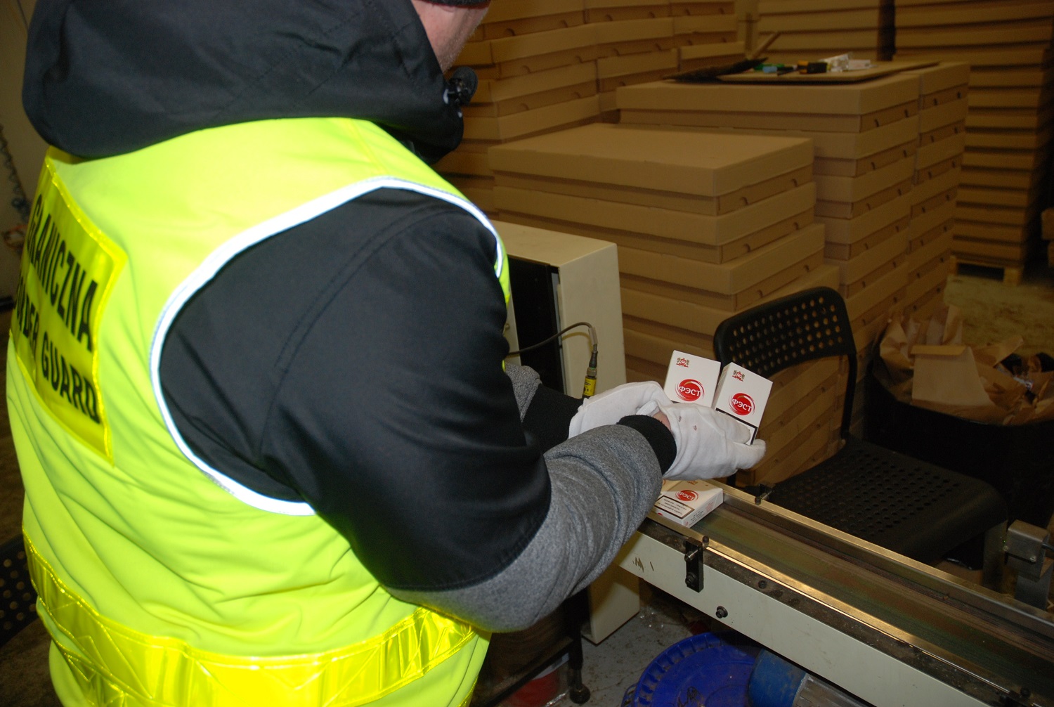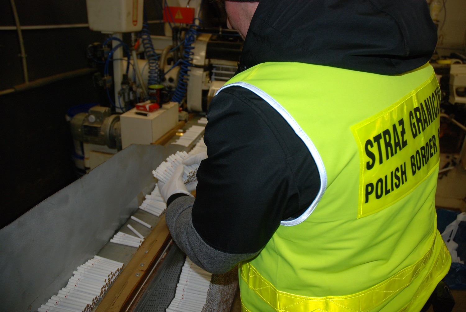 Cudzoziemcy – obywatele Ukrainy w wieku od 23 do 59 lat zostali zatrzymani na gorącym uczynku podczas produkcji nielegalnych papierosów. W momencie wejścia do fabryki funkcjonariusze zastali działające w niej 2 kompletne linie produkcyjne. W skład profesjonalnych, o wysokim standardzie linii wchodziły maszyny produkujące krajankę, suszące tytoń, aromatyzujące tytoń, produkujące papierosy, pakowarki. Jedna maszyna wytwarzała 6 tys. papierosów na minutę, a maszyna pakująca pakowała 250 paczek na minutę. Nielegalne papierosy prawdopodobnie przeznaczone były na rynek Europy Zachodniej i Polski.