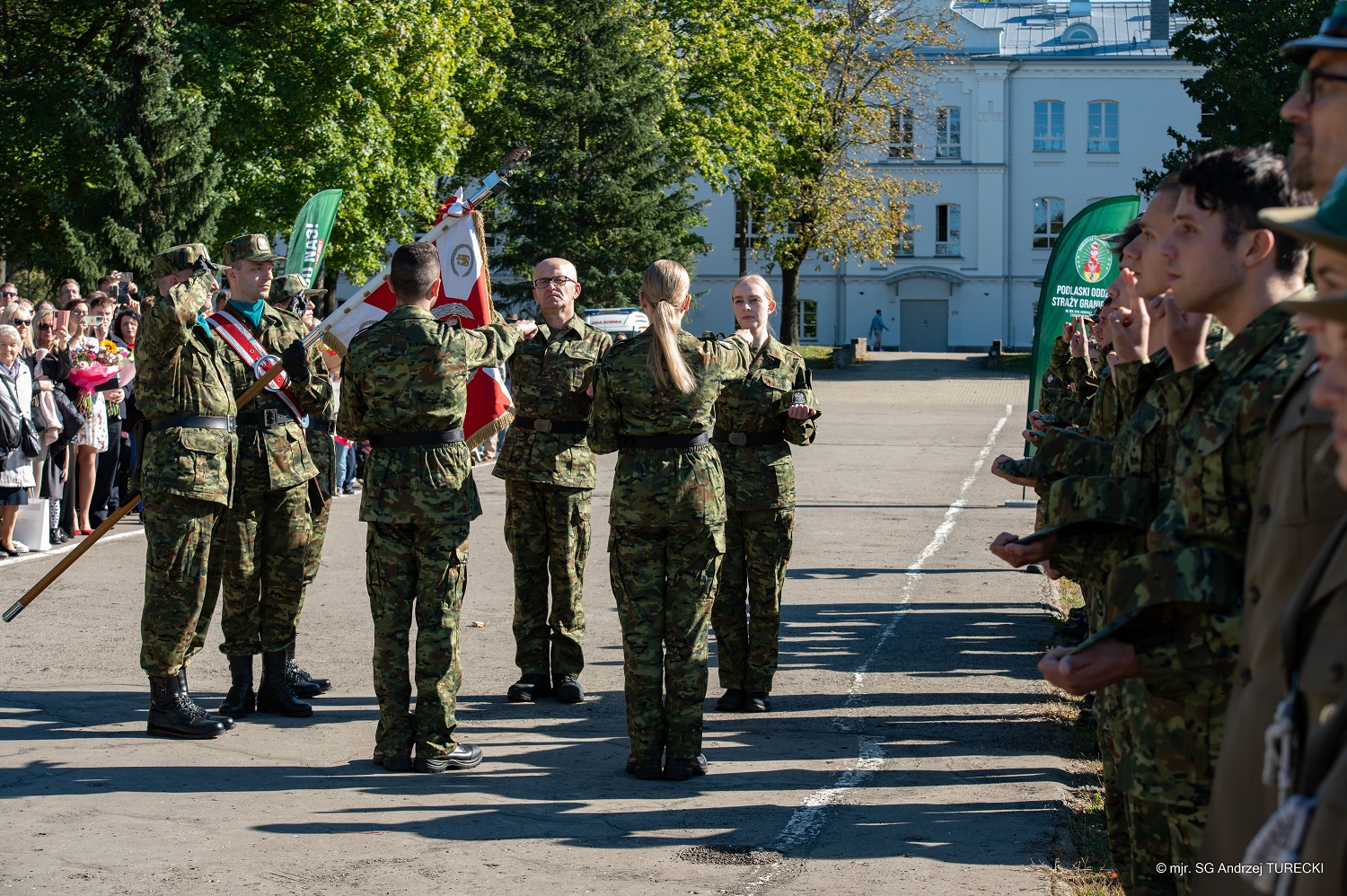 21 kobiet i 43 mężczyzn w asyście pocztu sztandarowego złożyło ślubowanie przed Komendantem Podlaskiego Oddziału Straży Granicznej gen bryg. SG Sławomirem Klekotką. Było to kolejne ślubowanie w tym roku. Komendant pogratulował nowo zatrudnionym funkcjonariuszom pozytywnego zakończenia procesu rekrutacji i życzył wielu sukcesów w szeregach Straży Granicznej.