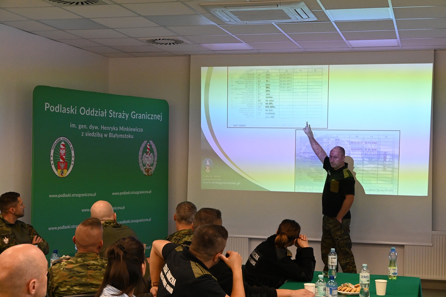 W warsztatach, które odbyły się w minionym tygodniu, uczestniczyli funkcjonariusze z Placówek SG w Narewce, Płaskiej, Kuźnicy, Bobrownikach, Białowieży, Czeremsze oraz Wydziału Granicznego i Wydziału Analiz, Informacji i Współpracy Międzynarodowej POSG. Dodatkowo uczestniczyli również Policjanci z Hajnówki.