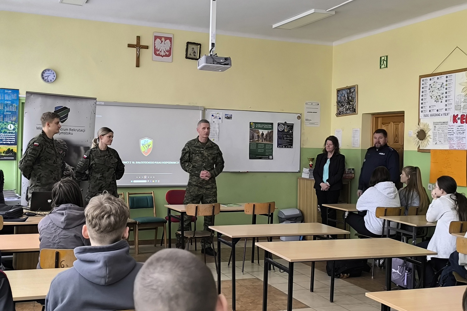 Natomiast funkcjonariusz z Placówki SG w Bobrownikach spotkał się z uczniami klas ósmych Szkoły Podstawowej im. Partyzantów Braci M. i A. Chrzanowskich w Gródku. Szczegółowo omówił podstawowe aspekty funkcjonowania Straży Granicznej oraz kryteria przyjęć do służby przygotowawczej i kontraktowej w Straży Granicznej. Przedstawił również etapy naboru, możliwości bezpłatnych szkoleń, awansu i rozwoju zawodowego w Straży Granicznej. W spotkaniu uczestniczyli również przedstawiciele Sił Zbrojnych RP oraz Policji.