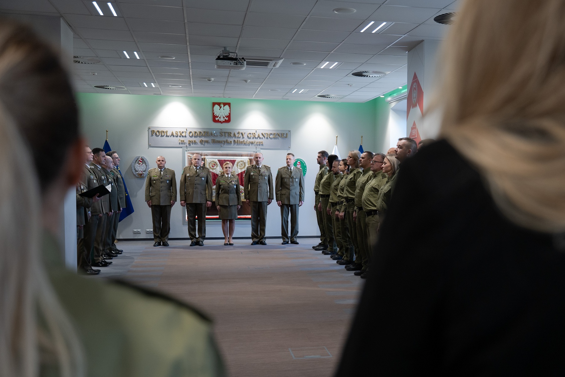 W komendzie oddziału w Białymstoku, podczas uroczystej zbiórki w Sali Tradycji, na stanowisko p.o. nowego naczelnika Wydziału Techniki i Zaopatrzenia, Komendant Podlaskiego Oddziału Straży Granicznej gen. bryg. SG Sławomir Klekotka, mianował ppłk. SG Tomasza Kołnierowicza. Na stanowisko p.o. Naczelnika Wydziału Kontroli i Nadzoru ppłk. SG Andrzeja Kuderskiego, a na stanowisko p.o. Naczelnika Wydziału Ochrony Informacji ppłk. SG Jarosława Kuryłowicza. Nowego naczelnika ma również Wydział Graniczny, jego obowiązki od dziś pełni ppłk SG Arkadiusz Tomaszewski, a pełniącą obowiązki Naczelnika Wydziału ds. Cudzoziemców została ppłk SG Zofia Zielepucha.