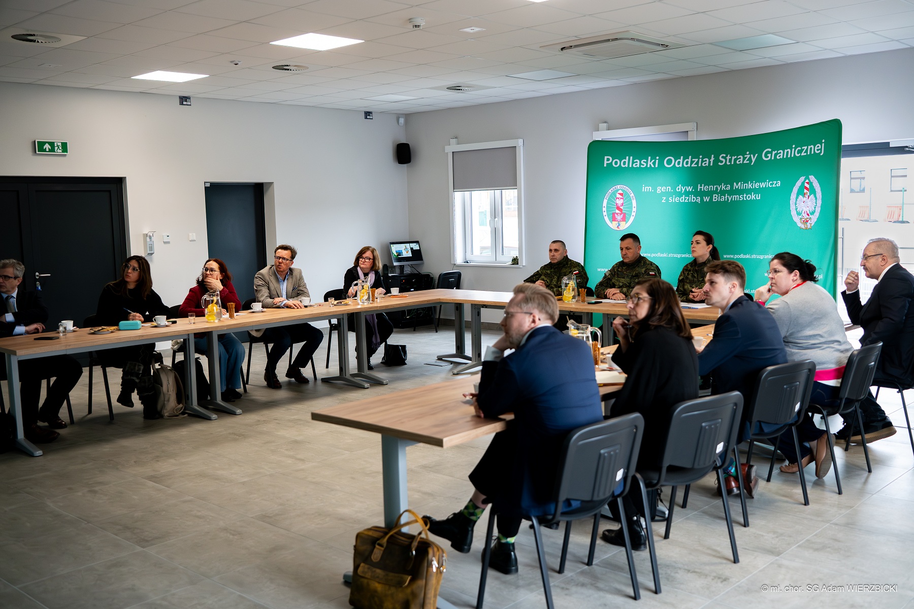 Gości na terenie Placówki Straży Granicznej w Kuźnicy przywitał Komendant Podlaskiego Oddziału Straży Granicznej gen. bryg. SG Sławomir Klekotka wraz z Komendantem Placówki SG w Kuźnicy płk. SG Wojciechem Zyśkowskim.