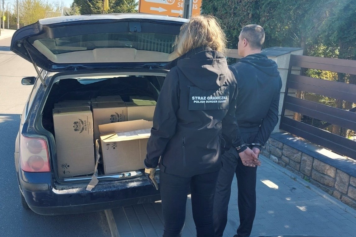 21 kwietnia 2026 r. funkcjonariusze Placówki Straży Granicznej w Kuźnicy podczas wykonywania czynności służbowych w gminie Gródek, zatrzymali samochód osobowy marki Ford. Autem podróżowały dwie osoby. Obywatel Białorusi oraz obywatel Litwy. Mężczyźni przyjechali po odbiór 3 tys. paczek papierosów bez polskich znaków akcyzy, przemyconych za pomocą balonu meteorologicznego.
