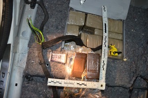 Ujawnione narkotyki przewoził obywatel Rosji. Mężczyzna próbował wyjechać z Polski przez drogowe przejście graniczne w Kuźnicy samochodem marki Peugeot 3008 z 2014 roku. Nienaturalne zachowanie kierowcy podczas kontroli granicznej wzbudziło podejrzenie funkcjonariusza Straży Granicznej, że w aucie może znajdować się nielegalny towar. W ramach współdziałania zwrócono się do Służby Celno – Skarbowej o prześwietlenie samochodu przy użyciu urządzenia skanującego. Obraz z kamery potwierdził przypuszczenia funkcjonariuszy Straży Granicznej. W pojeździe znajdowała się podwójna podłoga. W wyniku szczegółowej kontroli ujawniono 131 zamkniętych hermetycznie paczek różnej wielkości z suszem roślinnym. Użyty tester narkotyczny wykazał, że jest to haszysz. Łącznie zabezpieczono około 114 kg haszyszu o szacunkowej wartości blisko 5,7 mln zł.