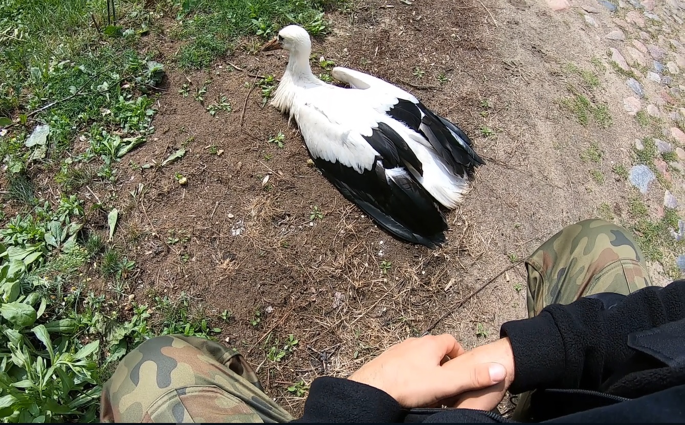 Funkcjonariusze natychmiast skontaktowali się z powiatowym Lekarzem Weterynarii i Nadleśnictwem Krynki. Bocian miał trudności z samodzielnym poruszaniem się. Zdecydowano, że zostanie przekazany do Ośrodka Rehabilitacji Ptaków i Ssaków Nadleśnictwa Krynki w miejscowości Poczopek. Stosując się do instrukcji udzielanych telefonicznie przez lekarza weterynarii funkcjonariusze przetransportowali ptaka w bezpieczne dla niego miejsce.