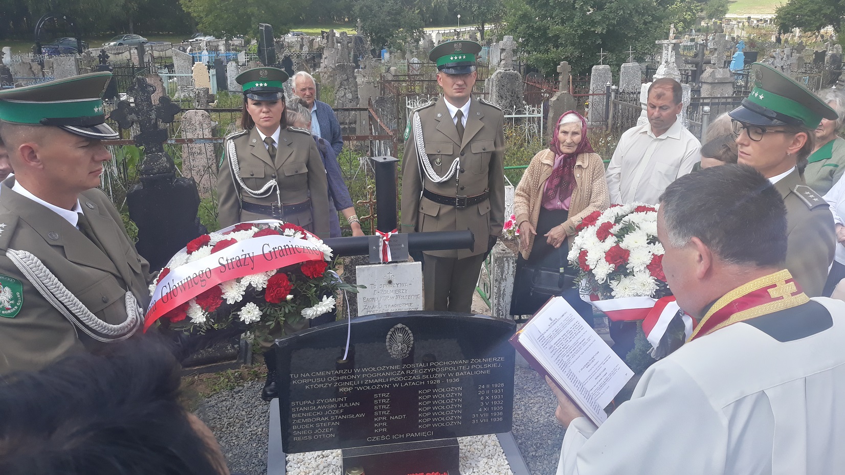 Uroczystość poświęcenia grobu siedmiu żołnierzy Korpusu Ochrony Pogranicza (KOP) odbyła się w niedzielę 11 sierpnia 2019 roku w Wołożynie w obwodzie mińskim na Białorusi. W uroczystości wzięli udział polscy dyplomaci, przedstawiciele Polonii, działacze białoruskiego Związku Piłsudczyków RP, przedstawiciele polskiej Straży Granicznej, w tym asysta honorowa z Podlaskiego Oddziału Straży Granicznej z Białegostoku. Uroczystość rozpoczęła się od nabożeństwa w Kościele Św. Józefa w intencji poległych polskich żołnierzy, gdzie następnie na cmentarzu pod odnowionym pomnikiem żołnierzy KOP wszyscy zebrani oddali hołd i złożyli kwiaty. Poświęcenia dokonał proboszcz miejscowej parafii ks. Henryk Okołotowicz.