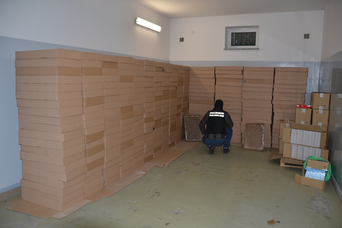 W minionym tygodniu funkcjonariusze Podlaskiego Oddziału Straży Granicznej przeprowadzili działania w wyniku, których na dwóch posesjach w powiecie białostockim, przeszukali mieszkania, budynki gospodarcze oraz dwa pojazdy. W sumie w związku z podjętymi czynnościami ujawniono 1 341 200 sztuk papierosów bez polskich znaków akcyzy zapakowanych w pudełka kartonowe. Szacunkowa wartość ujawnionych nielegalnych wyrobów tytoniowych wynosi blisko 950 tys. zł. Gdyby nielegalny towar trafił do sprzedaży Skarb Państwa z tytułu nieodprowadzonych podatków straciłby ponad 1,5 mln złotych.