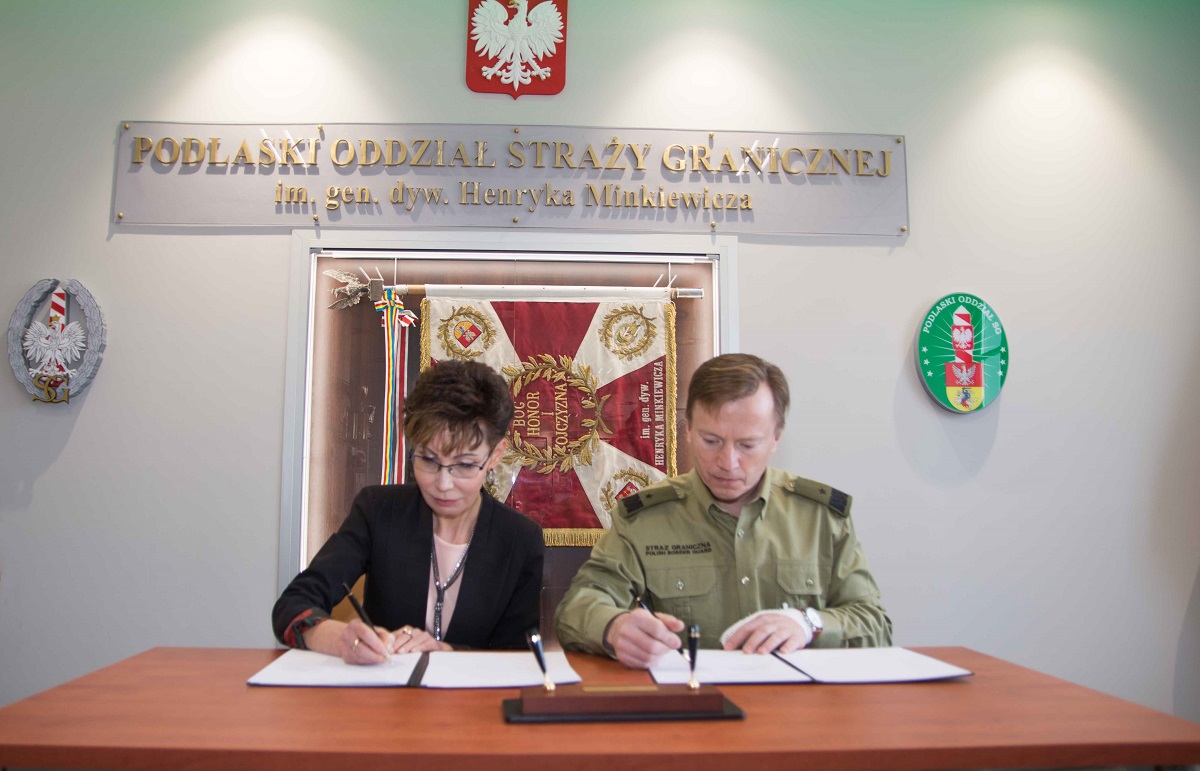 Porozumienie podpisane przez Komendanta Podlaskiego Oddziału Straży Granicznej gen. bryg. SG Andrzeja Jakubaszka i Dyrektor I Liceum Ogólnokształcącego Centrum Naukowo - Biznesowe im. Polskich Spadochroniarzy w Białymstoku mgr Agnieszkę Mancewicz dotyczy współpracy w ramach wspólnej realizacji zadań dotyczących edukacji oraz kształtowania postaw patriotycznych i społecznych wśród młodzieży. Będzie ono stwarzać możliwości poznawania przez uczniów specyfiki służby granicznej na placówkach SG, pozwoli również na realizację wspólnych przedsięwzięć o charakterze edukacyjnym kształtujących patriotyczne postawy wśród młodzieży.