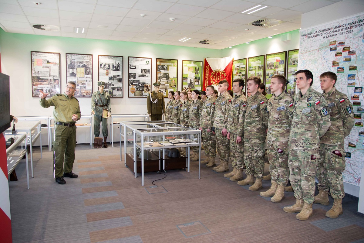 We wczorajszym spotkaniu rozpoczynającym współpracę z I Liceum Ogólnokształcącym Centrum Naukowo - Biznesowe im. Polskich Spadochroniarzy w Białymstoku wzięli udział również jego uczniowie. Młodzież klas mundurowych miała możliwość zapoznania się z zadaniami realizowanymi przez Podlaski Oddział Straży Granicznej, ze szczególnym uwzględnieniem skali nielegalnej migracji na polsko – białoruskim odcinku granicy państwa. Zwiedzanie Sali Tradycji było dobrym momentem do zapoznania sie z historią przedwojennych formacji granicznych oraz tradycjami do których odwołuje się współczesna Straż Graniczna. Uczniom przybliżono sylwetkę patrona Podlaskiego Oddziału SG gen. dyw. Henryka Minkiewicza oraz jego zasługi w proces tworzenie Korpusu Ochrony Pogranicza. Uczniowie zapoznali się także ze specjalistycznym sprzętem wykorzystywanym w służbie granicznej.