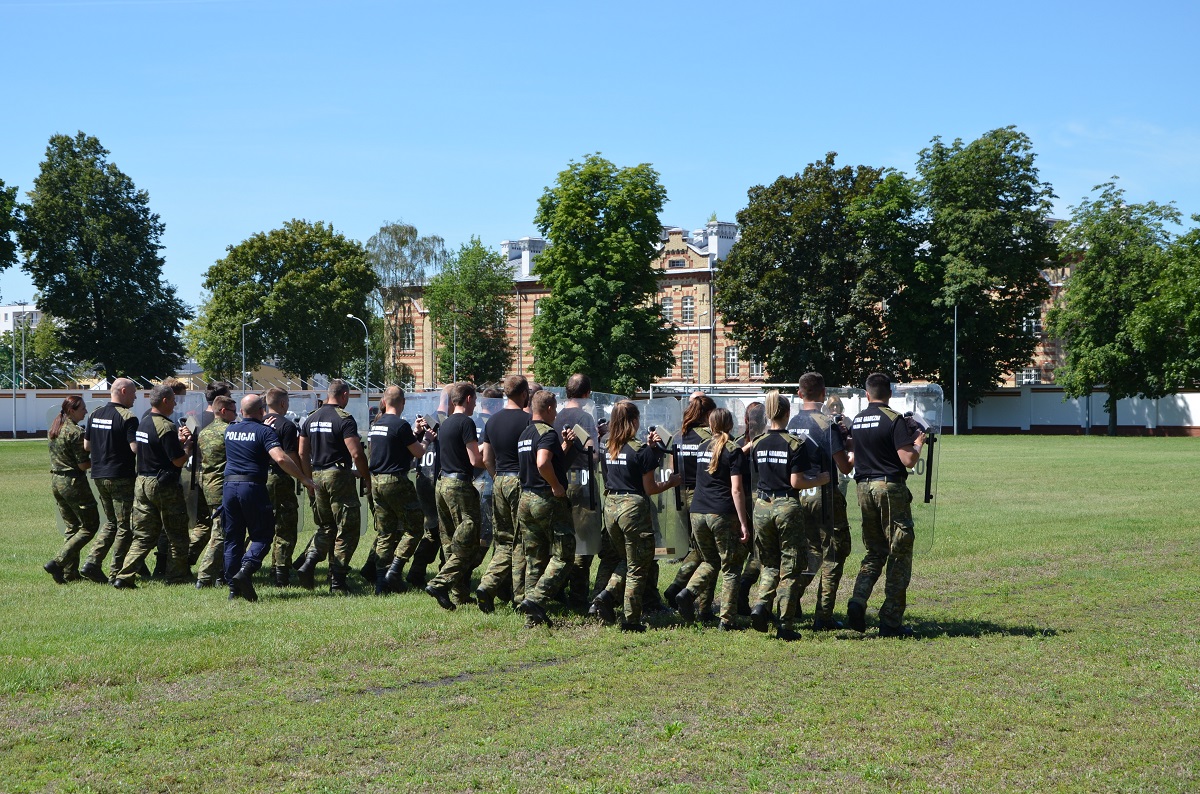 Na terenie Komendy Oddziału odbyło się już kolejne szkolenie z technik posługiwania się tarczami. W szkoleniu udział wzięło 58 funkcjonariuszy Podlaskiego Oddziału Straży Granicznej. Szkolili się pod okiem funkcjonariuszy z oddziału prewencji Policji z Białegostoku.