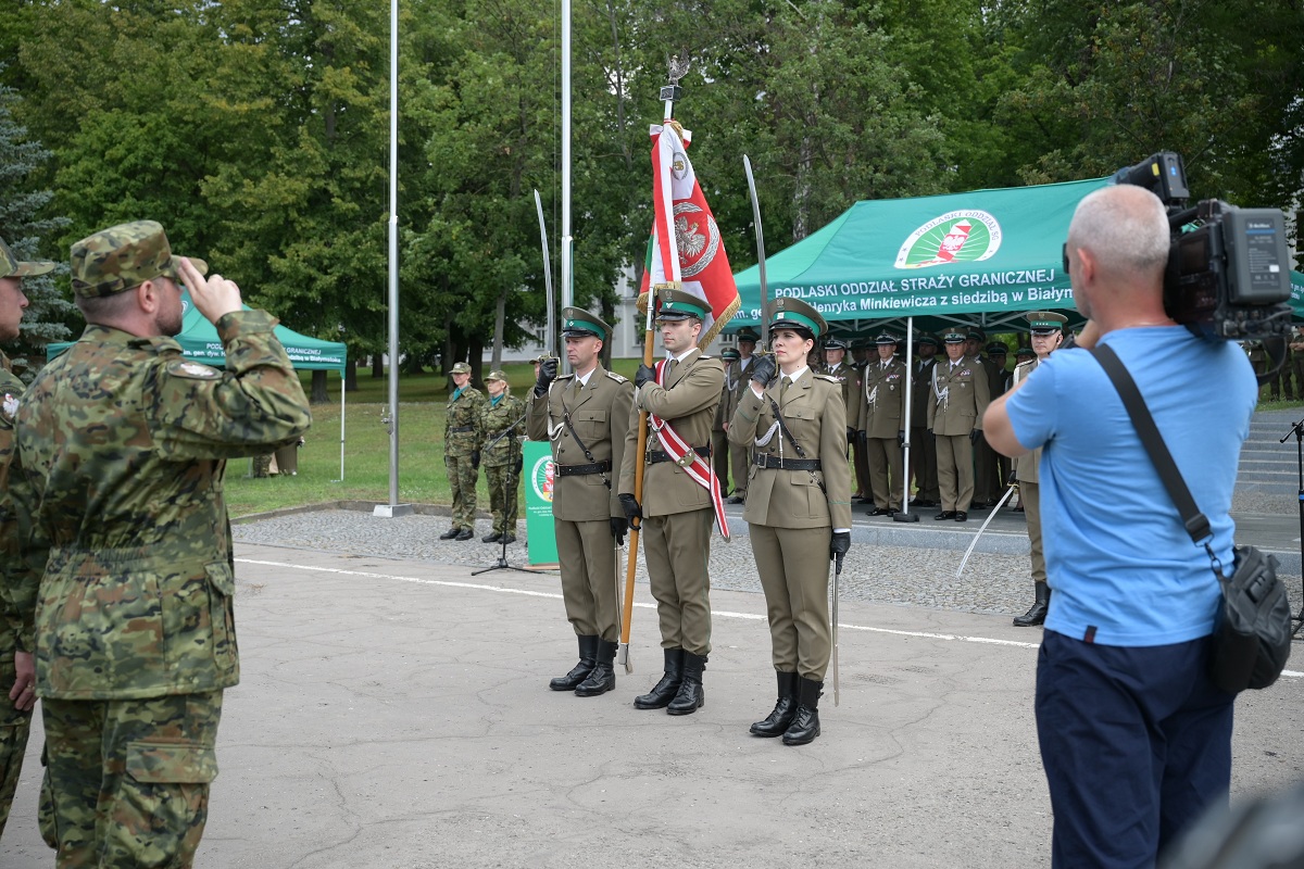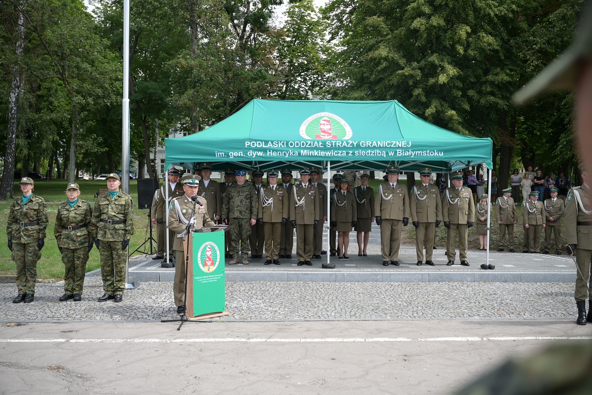 W asyście pocztu sztandarowego nowo przyjęci funkcjonariusze służby kontraktowej złożyli ślubowanie przed Komendantem Podlaskiego Oddziału Straży Granicznej gen. bryg. SG Sławomirem Klekotką. Było to pierwsze ślubowanie funkcjonariuszy w ramach nowego rodzaju służby w Straży Granicznej. Komendant pogratulował nowo zatrudnionym funkcjonariuszom pozytywnego zakończenia procesu rekrutacji i życzył wielu sukcesów w szeregach Straży Granicznej. Błogosławieństwa udzielili im kapelani - rzymskokatolicki i prawosławny.