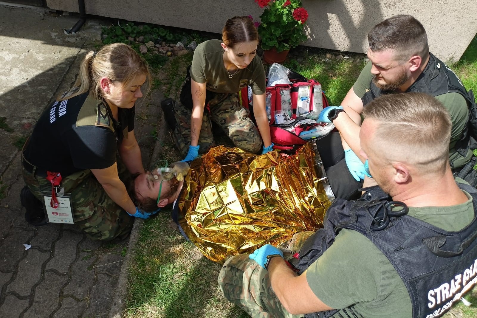 Jak się jednak okazało, prawdziwy egzamin z umiejętności ratowniczych czekał funkcjonariuszy Placówki Straży Granicznej w Kuźnicy tuż po zakończeniu mistrzostw. Wracając z zawodów, w pobliżu Pałacu Branickich w Białymstoku, byli świadkami zdarzenia z udziałem młodego rowerzysty. Chłopak jadąc przewrócił się i uderzył głową o chodnik, po czym stracił przytomność. Funkcjonariusze natychmiast ruszyli z pomocą, zabezpieczyli głęboką ranę głowy i wezwali pogotowie ratunkowe. Pozostali z poszkodowanym, aż do przyjazdu medyków.