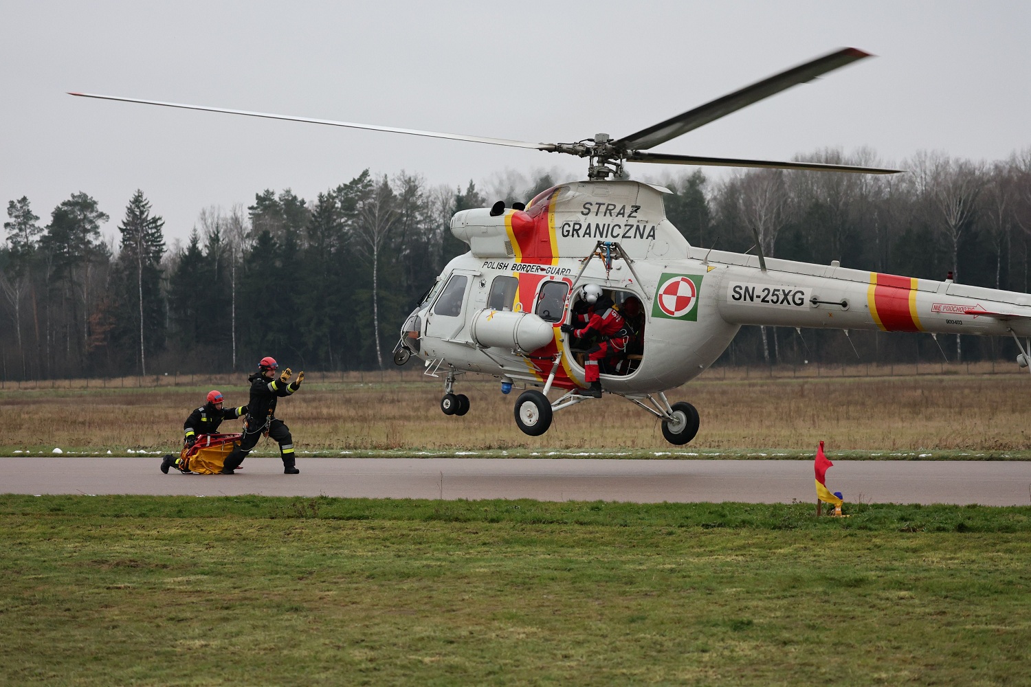 W ubiegłym tygodniu (24-27.11.2025 r.) na terenie lotniska Białystok-Krywlany odbywało się szkolenie specjalistyczne ratowników i operatorów Krajowego Systemu Ratowniczo-Gaśniczego z wykorzystaniem statku powietrznego należącego do Straży Granicznej.