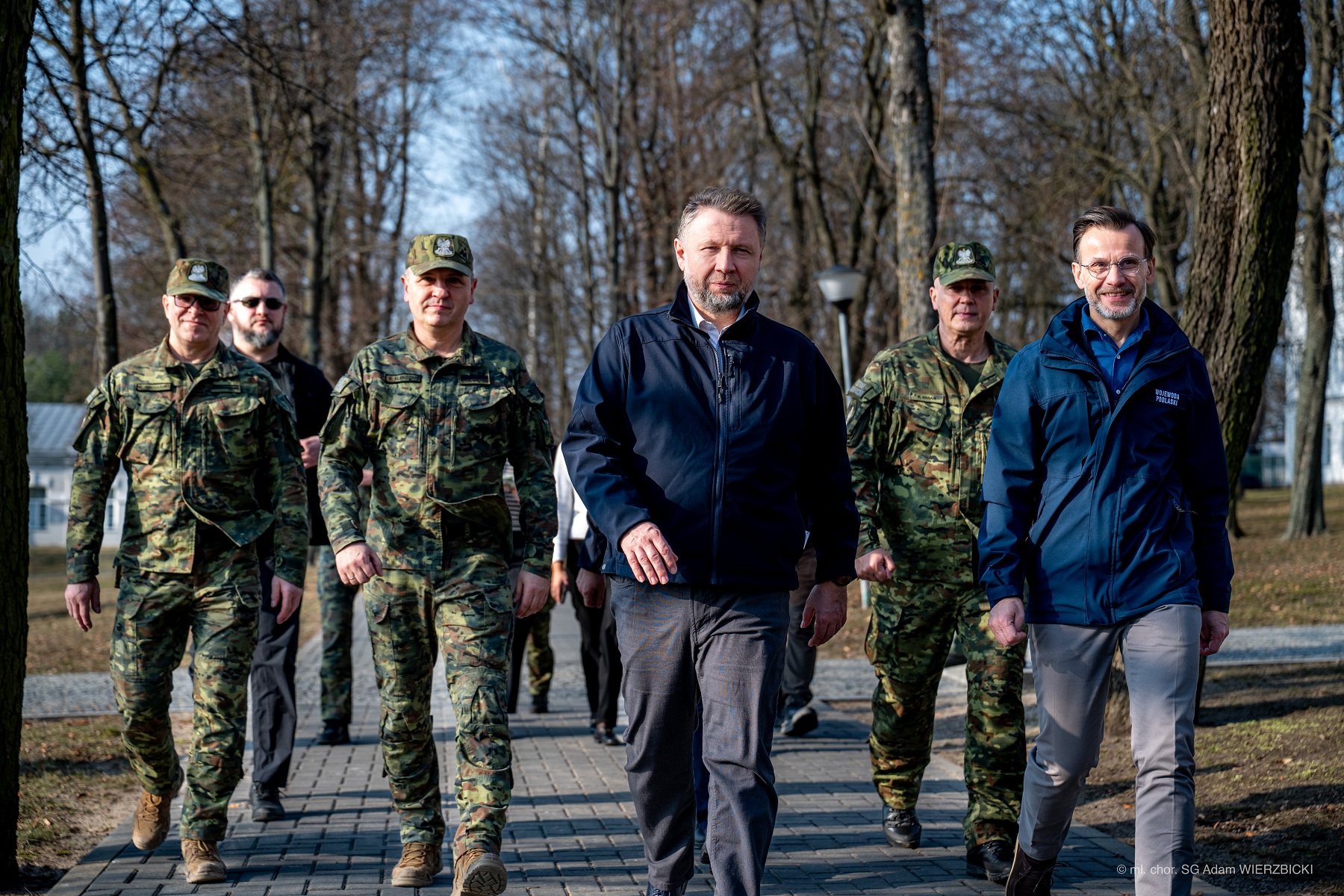 Wizytę rozpoczęła odprawa z przedstawicielami kadry kierowniczej Straży Granicznej, Wojska Polskiego oraz Wojewody Podlaskiego w Placówce Straży Granicznej w Bobrownikach.