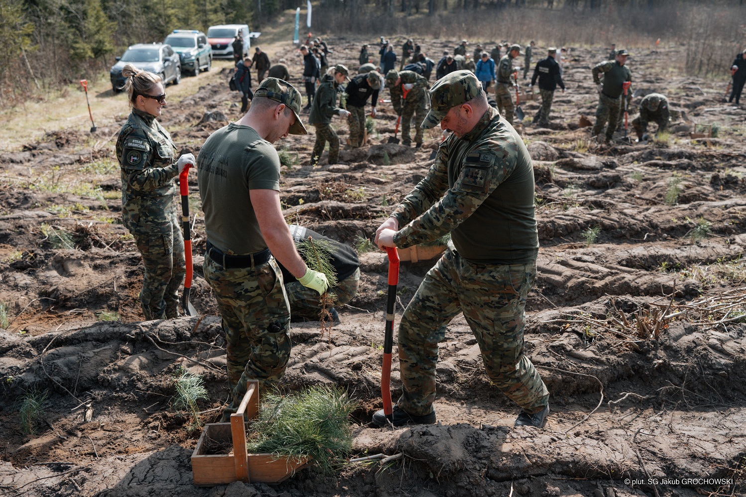 22 kwietnia 2026 r. na terenie Nadleśnictwa Czarna Białostocka odbyła się akcja sadzenia sadzonek drzew i krzewów gatunków rodzimych. Udział w wydarzeniu wzięli funkcjonariusze i pracownicy Podlaskiego Oddziału Straży Granicznej. Do inicjatywy zaproszeni zostali również uczniowie klas o profilu mundurowym z Augustowa oraz Dąbrowy Białostockiej.